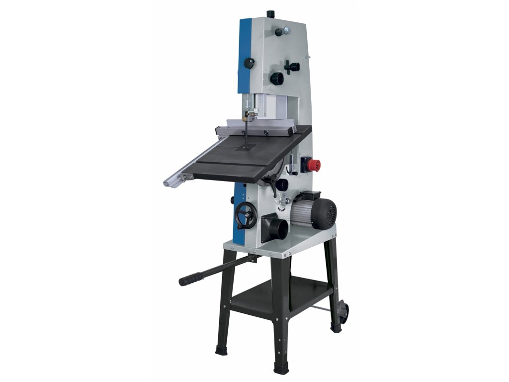 • Pásová píla je tiež vybavená konektorom pre pripojenie odsávača pilín a robustným stojanom s kolieskami a výsuvnou pákou pre ľahký transport.